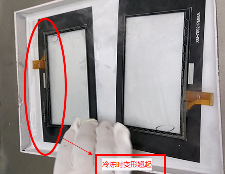 3、在机器达到设定温度后将产品放在冷冻板上面,冷冻时长因产品大小和厚度及胶不同而各